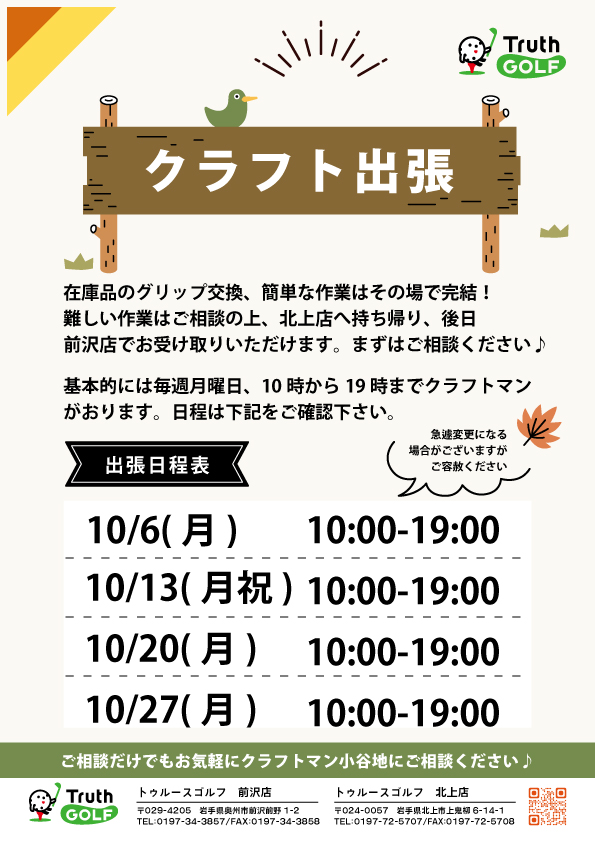 また、出張日以外でも前沢店お預かり&お渡しでクラフト作業承っておりますので