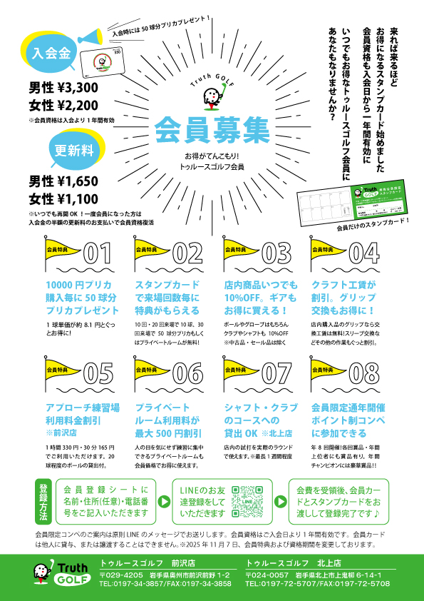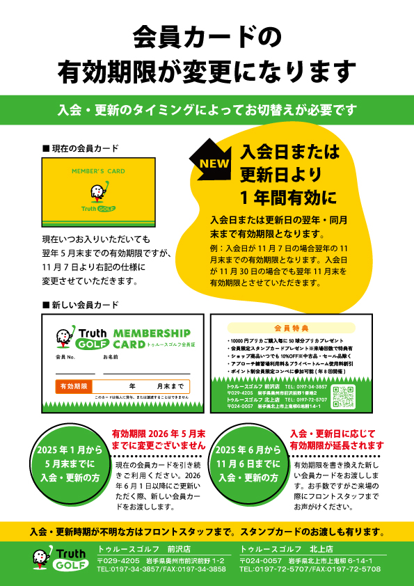Truth GOLFでは11/7より会員の有効期限を入会日・更新日より