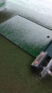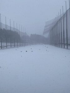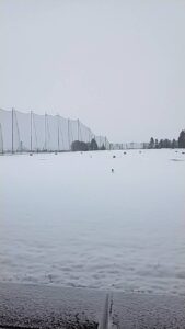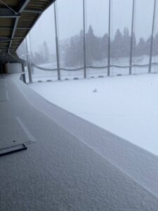 予報を上回る降雪に見舞われ、打席内にも雪が吹きこんでしまいました。