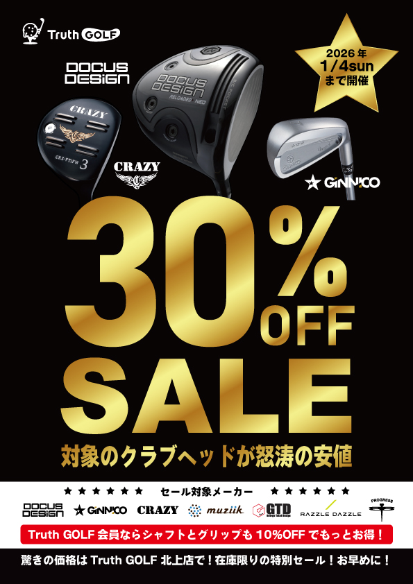 Truth GOLFでは12/5(金)より北上店にて30%OFFセールを開催!