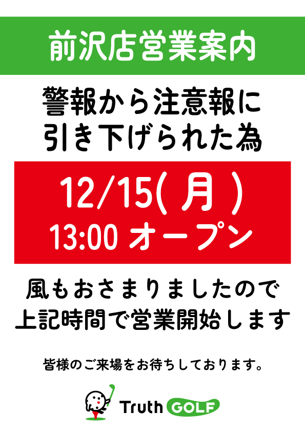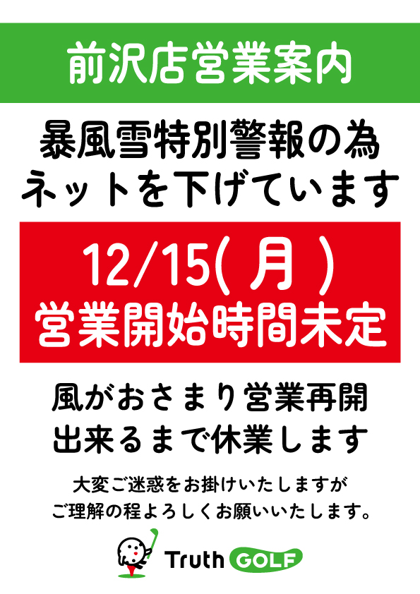前沢店に関しましては、ネットが上げられる状況にない為、風がおさまるまで営業をお休みさせていただきます。
