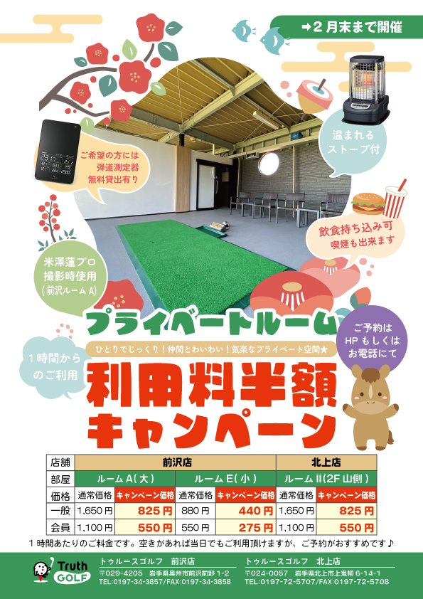 プライベートルーム|ゴルフの楽しさを何度でも|Truth GOLF(トゥルースゴルフ)|岩手県奥州市ゴルフ練習場