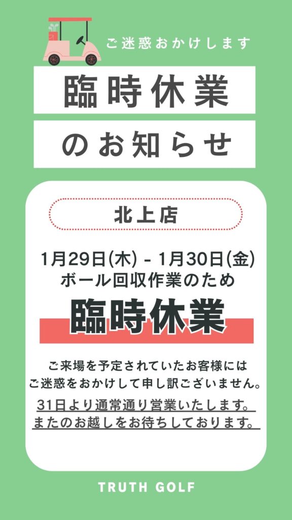 1/29(木)1/30(金)北上店臨時休業