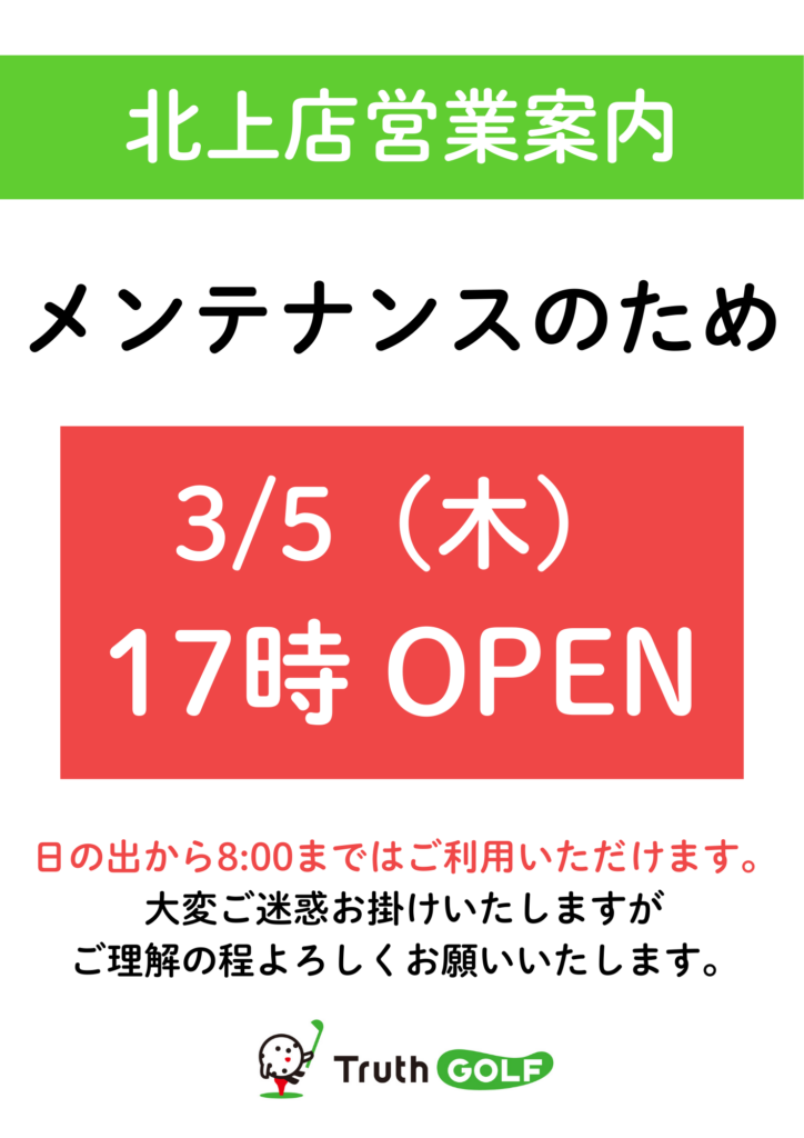 北上店3/5(木)17時OPEN