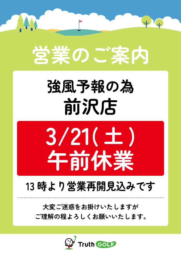 3/21(土)、前沢店午前休業