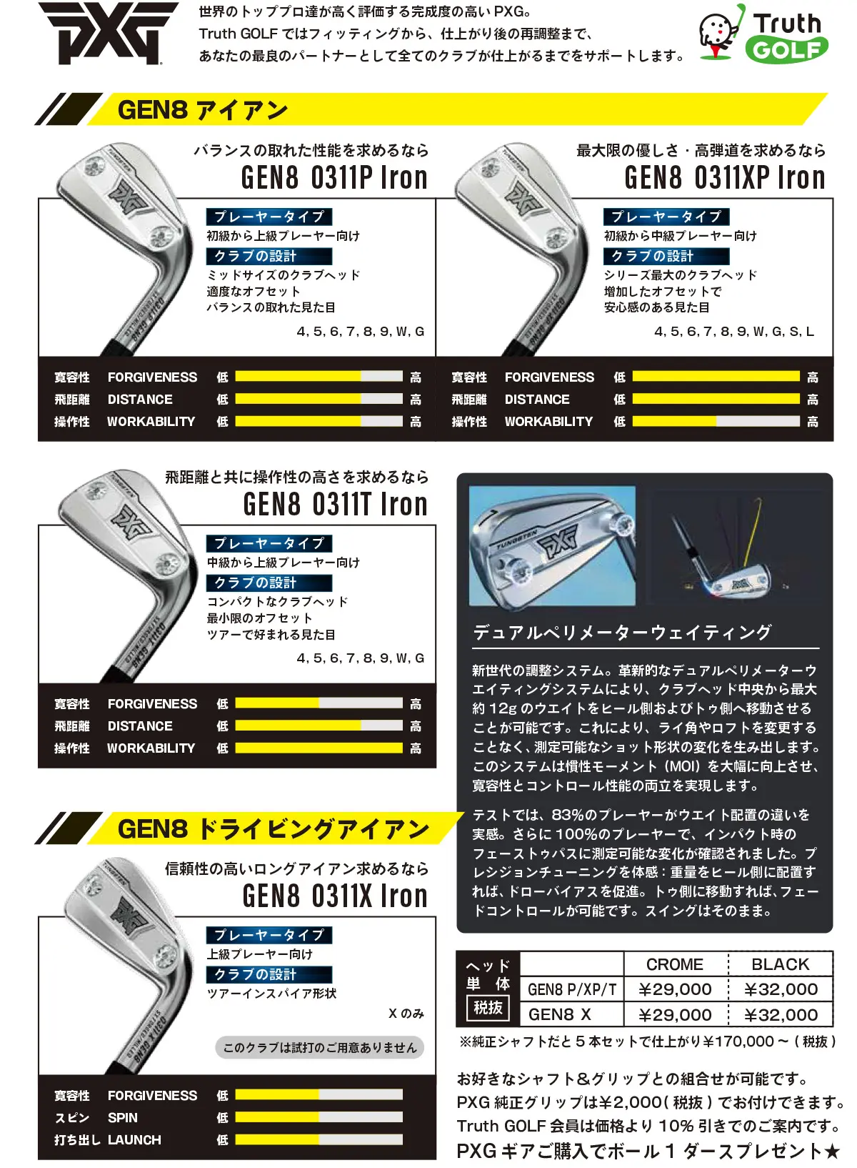 上記にまとめた商品はもちろん、GEN5シリーズ、ウェッジのお取り扱いもあります。詳しくはPXGのHPをご確認下さい。