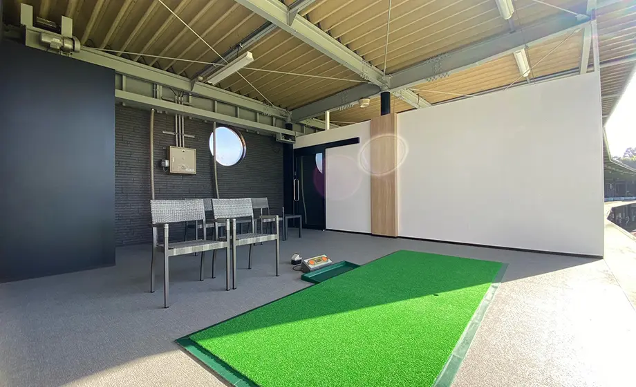 前沢店のターゲットグリーンは転がりを再現できるマットを使用。実戦感覚で練習が出来ます!